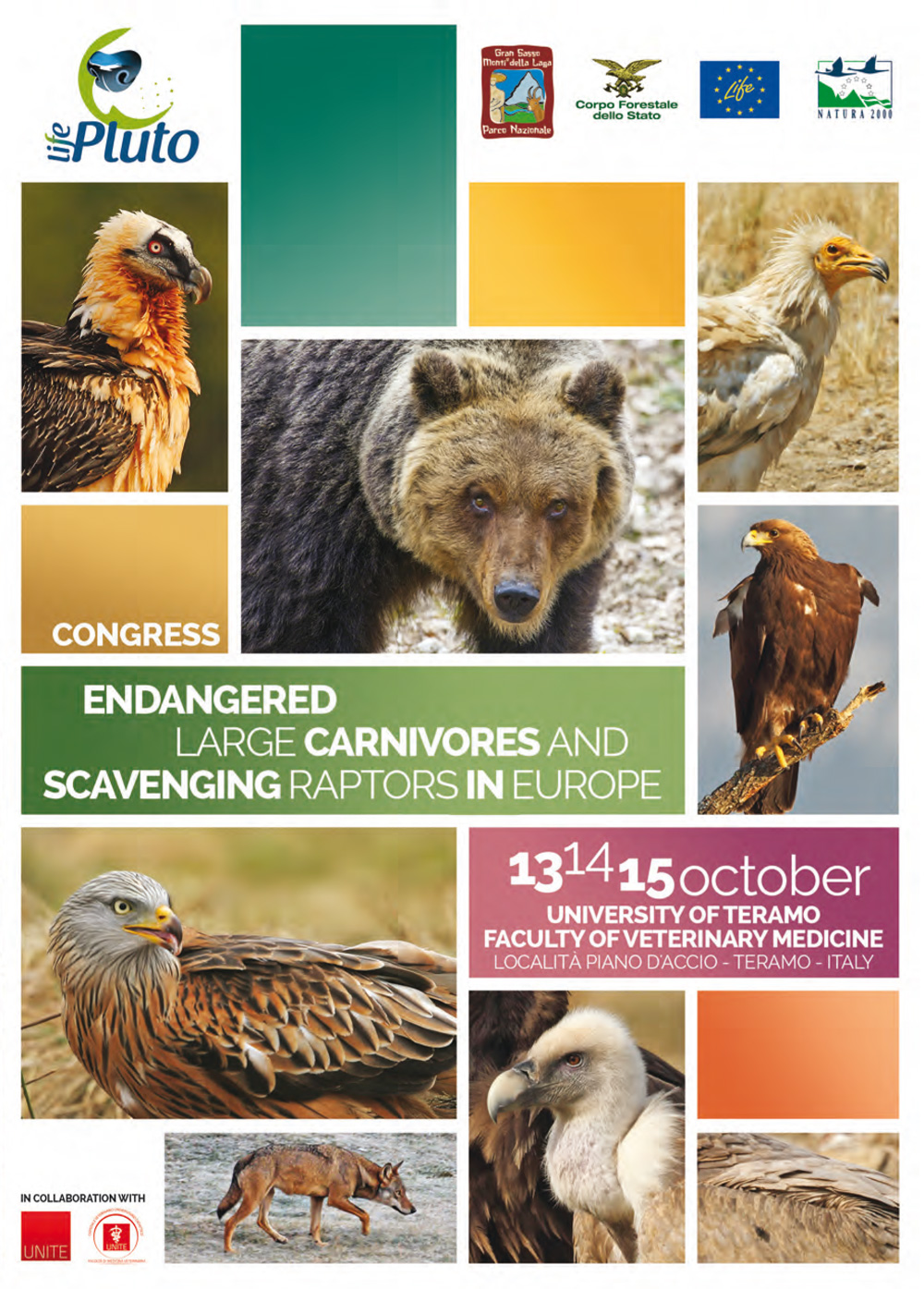 The conference, organized by the Gran Sasso-Laga Park with the support of the Veterinary Medicine Department of the University of Teramo, offers a rich and interesting program divided into two sessions: the first one is dedicated to the nature/conservation aspects, and it offers an overview of the status of different large carnivores and scavenger birds of prey on a european level, of the most serious risks threatening them and of the projects carried out to protect them; the second session mainly regards the technical/veterinary aspects, and it deals with the illegal use of poison, the lead poisoning, the electrocution, the role of the feeding stations etc.