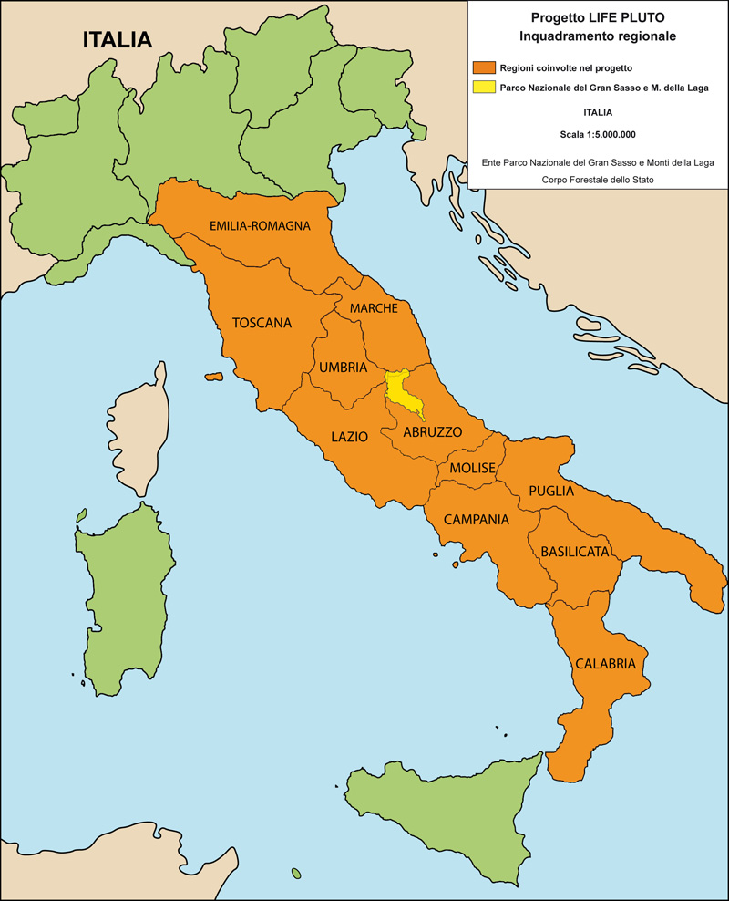 Aree di progetto: Italia centro-meridionale (regioni Emilia-Romagna, Toscana, Umbria, Marche, Abruzzo, Molise, Lazio, Campania, Puglia, Basilicata e Calabria); azioni specifiche nel Parco Nazionale del Gran Sasso e Monti della Laga